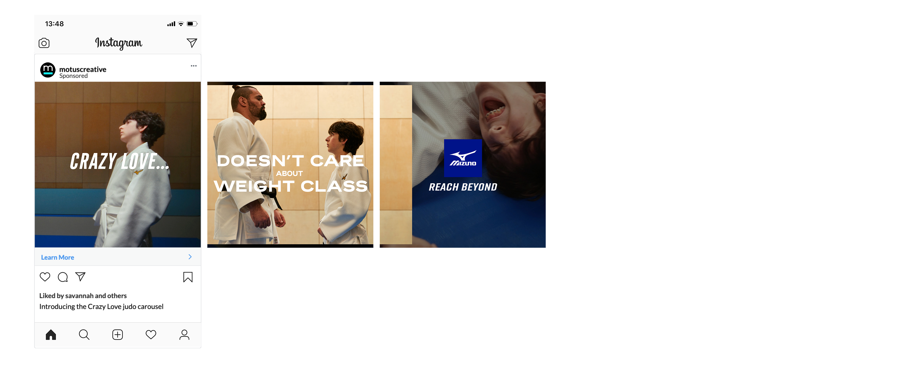 Mizuno’s Crazy Love campaign showcases their consumers’ crazy love for their sports, and the products that Mizuno create. We created a hero film, key visuals, and social assets covering a range of sports, from running to handball to judo.
